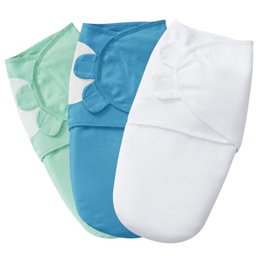 PHF 100% Cotton Baby Swaddle Sleep Sacks - 3 Pack for Newborns (0-3 Months) - Easy Adjustable Swaddle Blanket Wrap - Baby Essentials (White, Blue, Green)