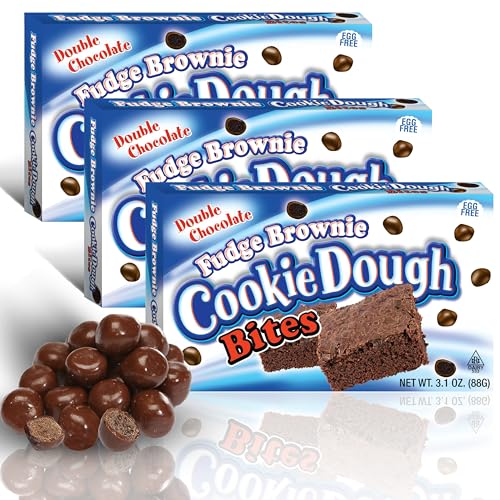 Cookie Dough Bites Fudge Brownie | 3.1 oz (Pack of 3) | The Original Edible Cookie Dough | Movie Theater Candy