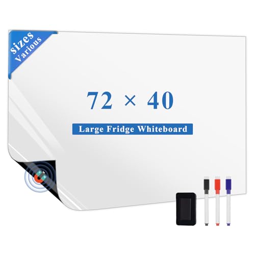LYZZXI Magnetic Fridge White Board Paper, 72" x 40" Large Dry Erase Board Sheet for Organizer and Planner, Kitchen Refrigerator Whiteboard for Family to-do List, Includes Markers and Eraser