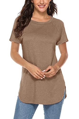Women Basic Casual Tops Round Neck T Shirts Summer Short Sleeve Tunic Blouses (S,Khaki)
