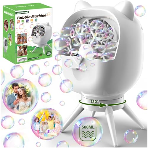 Zerhunt Bubble Machine Automatic for Parties: Rechargeable Bubble Maker with 500ML Large Capacity for Outdoor Weddings, Birthdays, and Family Gatherings - Portable Bubble Toys for Kids & Toddlers