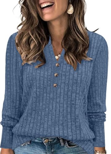 Sweaters for Women Early Fall Fashion Plus Size Tops Womens Clothing Boho Clothes Long Sleeve Shirts Blouses Dressy Oversized Tshirts Tunic Sweater Trendy Business Casual School Outfits 2025 Blue 2XL