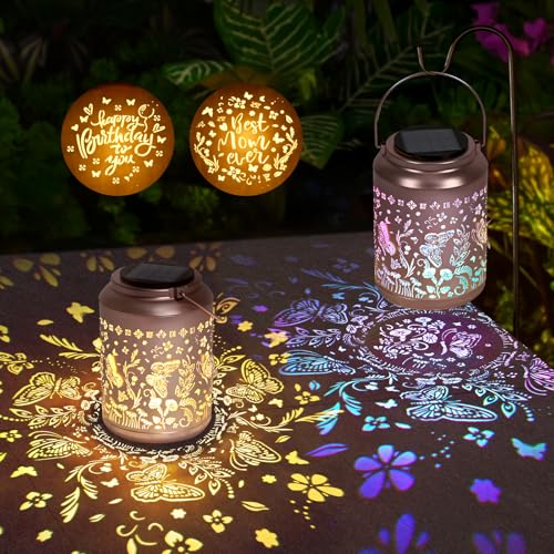 Uspring 2 Pack 3D Butterfly Solar Lanterns Gifts for Women Mom Grandma Birthday Gifts for Women Garden Patio Porch Yard Decor Outdoor Lantern Waterproof Hanging Solar Lights with 6 Replaceable Bases