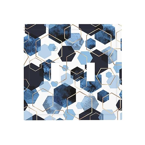 Geometric Navy Blue Abstract Marble 2 Gang Light Switch Cover Double Toggle Wall Plate Decorative Switchplate Electrical Faceplate for Bathroom Kitchen Bedroom Decor