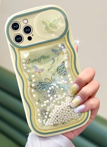 Toycamp for iPhone 12 Pro Max Case - Women Girls Cute Cover Glitter Butterfly with Sliding Camera Cover Unique Kawaii Girly Teens Design Flowing Liquid Quicksand Phone Case for iPhone 12 Pro Max