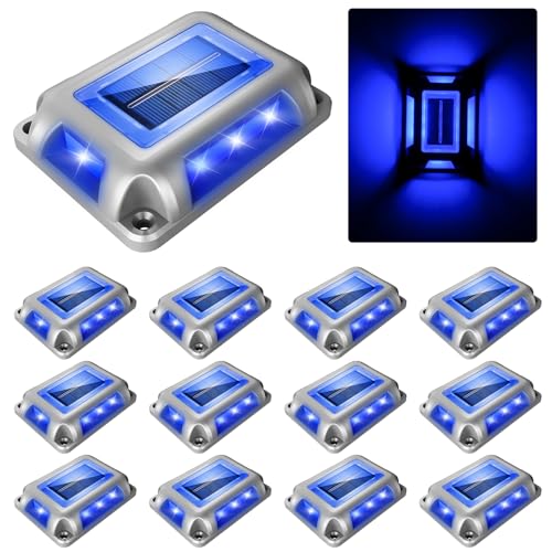 CREPOW Solar Deck Lights Driveway Dock Lights- 12 Packs Waterproof 1200mAh Solar Powered Outdoor LED Aluminum Dock Lighting Road Markers Step Light for Driveway Sidewalk Garden Pathway Yard (Blue)