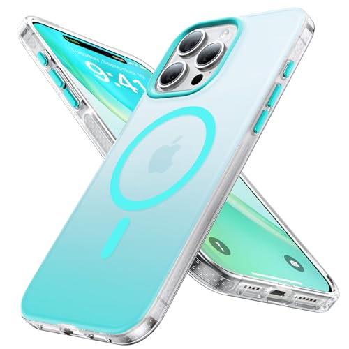 Aulofe Strong Magnetic for iPhone 15 Pro Case, [Compatible with MagSafe] [Military-Grade Drop Tested] Shockproof Protective Slim Thin Translucent Cover for iPhone 15 Pro Phone Case, GradientTurquoise