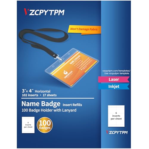Customizable Name Badges Insert and Holder,3x4 Inch Horizontal,White Printable Name Tag Insert Refills for Name Tag Holder,Laser/Inkjet Printable,100 Badges Insert and Badges Holder