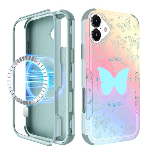 LISEVO for iPhone 16 Case Compatible with MagSafe - Women Girls Cute Magnetictective Phone Cover Girly Butterfly Pretty Heavy Duty Shockof Funda for Apple 16 Phone Cases