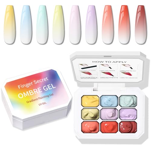Sponge Pat Paint Nail Gel, 9 Colors Ombre Nails Gradient Gel Nail Blush Blooming Aura Nails Drawing Stripper Floral Painting Nail Art, No Wipe, UV/LED Curing (9 Colors A)