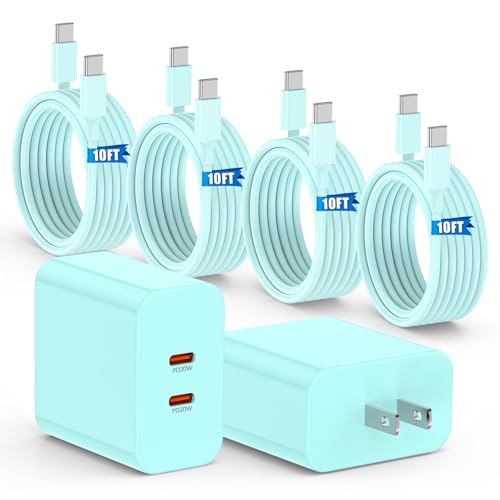 40W Dual Port iPhone 16 15 Pro Max Charger Fast Charging,2Pack Dual Port USB C Charging Block with 4Pack 10FT USB C to C Fast Charger Cord Long Compatible for iPhone 16/15 Plus/16 15 Pro Max-Green