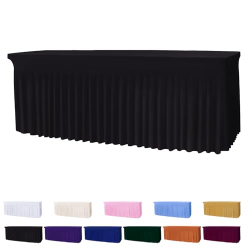 DREAMANIA Table Skirts for 6ft Rectangle Tables - 2PCS Black Table Covers for 6 Foot Tables, Wrinkle Resistant Ruffles Elastic Table Cloths and Table Skirt for Banquets/Weddings/Parties/Birthday