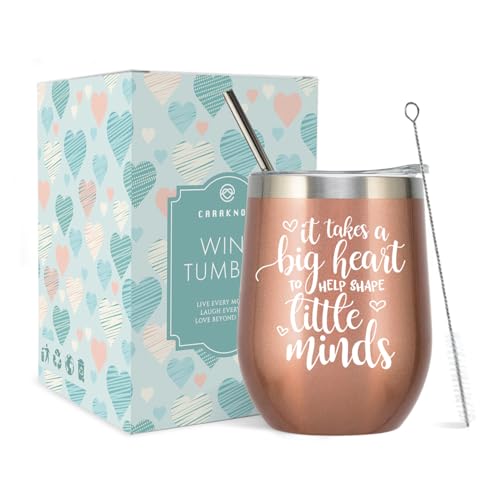 CARAKNOTS Teacher Gifts for Women Wine Tumbler Teacher Appreciation Gifts for Graduation Birthday Retirement Christmas 12 oz Stainless Steel Coffee Tumbler with Lid and Straw Rose Gold