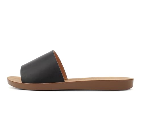 Soda Shoes Efron-S Women Flip Flops Basic Plain Slippers Slip On Sandals Slides Casual Peep Toe Beach (Black Pu, us_footwear_size_system, adult, women, numeric, wide, 7.5)