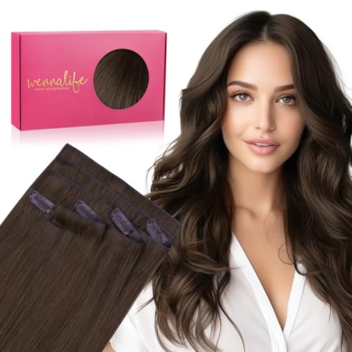 WENNALIFE Invisi Edge Clip in Hair Extensions Real Human Hair, 14 Inch 130g 9pcs Chocolate Brown Seamless Clip in Extensions Remy Hair Clip Ins Invisible PU Skin Weft Extensiones De Cabello Hmano