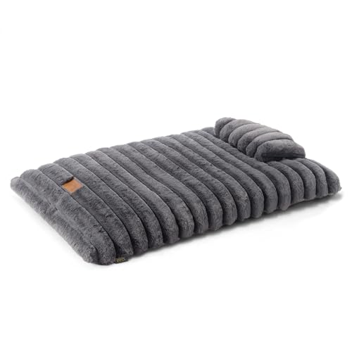 TOWN & COUNTRY LUXE CuddleTown Ribbed Bubble Stripe Pillow Crate Mat Pet Bed, Machine Washable Cover, Soft & Calming, Non-Slip Bottom, Dark Grey, Extra Small 23"x17"x3"