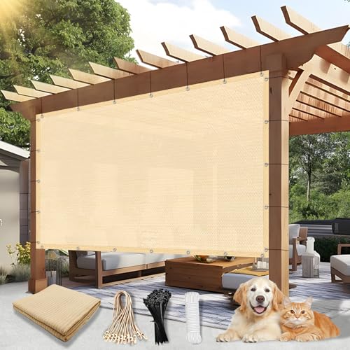 BELLE DURA 90% Outdoor Sun Shade Cloth, 10'×10' Pergola Shade Cover with Grommets, Privacy Screen Sunshades for Patio Garden Backyard Plant, Wheat