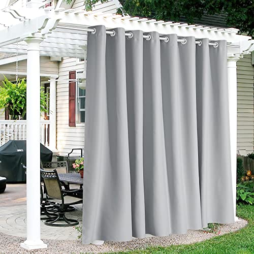RYB HOME Waterproof Outdoor Curtains for Patio, Room Darkening Indoor Outdoor Privacy Curtain Drape Rustproof Grommets Draperies for Porch Pavilion Cabin, W120 x L95, Light Grey, 1 Panel
