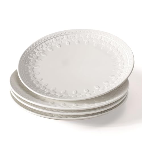Wareland Salad Plates Set of 4-8.25 Inch Ceramic Dessert Plates Embossed Appetizer Plates Modern White Small Dinner Plates for Kitchen - Microwave, Oven and Dishwasher Safe (Cross Floral)