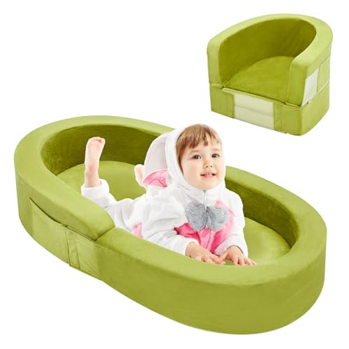 Toddler Travel Bed-Portable Toddler Bed, Foldable 2-in-1 Travel Toddler Bed Kids Sofa, Soft Foam Toddler Cot with Washable Cover, Convertible Sofa Bed for Toddler and Kids for Indoor&Outdoor Use