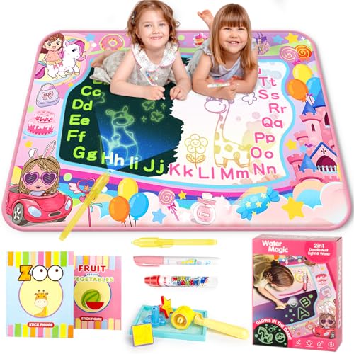 KULARIWORLD Water Doodle Mat Glowing Kids Painting Drawing Writing Coloring Mats Educational Toys for Toddlers Girls Age 3 4 5 6 Year Old for Christmas Birthday Gifts with Magic Pens