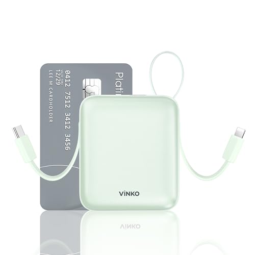 VINKO Small Portable Charger, 22.5W Fast Charging Mini Power Bank 10000mAh with Built-in Cables LED Display, Travel Essential USB-C Battery Pack Compatible with iPhone,Samsung,Android (Green)