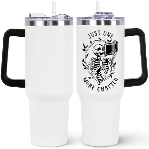 Book Lovers Gifts 40oz Tumbler with Handle and Straw Lid,Vacuum Insulated Leak Proof Tumbler bookish gifts for Women Readers Librarian,Book Accessories Stainless Steel Travel Mug,Bookish Skeleton