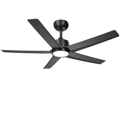ocioc 44 Inch Ceiling Fans with Lights and Remote,Quiet DC Motor, Dimmable, 3CCT, 6 Speeds,Reversible, Black Modern Ceiling Fan for Bedroom, Living Room,Dining Room