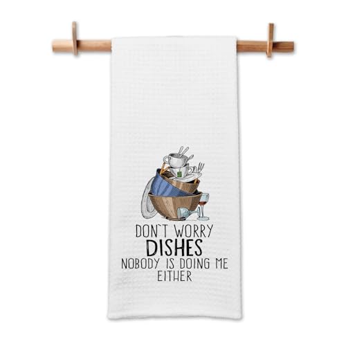 GOSJINNK Funny Kitchen Towels Don't Worry Dishes Nobody is Doing Me Either Dish Towels Funny Sayings Towels Gifts for Kitchen Dishwashing Decor Sweet Housewarming Gifts for Women Friend Hostess
