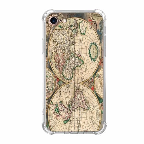 Hsondcn Case for iPhone SE3/SE2/8/7 with Retro Art Design,Aesthetic Vintage World Map Pattern,Trendy Soft TPU Bumper Phone Cover(SE,Map)