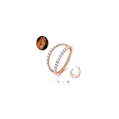 MILACOLATO G23 Titanium 16G Septum Clicker Nose Rings Double Open Stack Conch Daith Earrings Helix Tragus Cartilage Earrings Piercing Jewelry with Clear CZ for Women Men 10MM, Rose Gold Tone