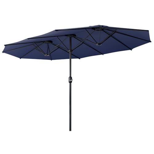Benass 15ft Large Outdoor Patio Umbrella, Double Sided Table Umbrella with Crank, 12 Steel Ribs Market Umbrella (Blue, no Base)
