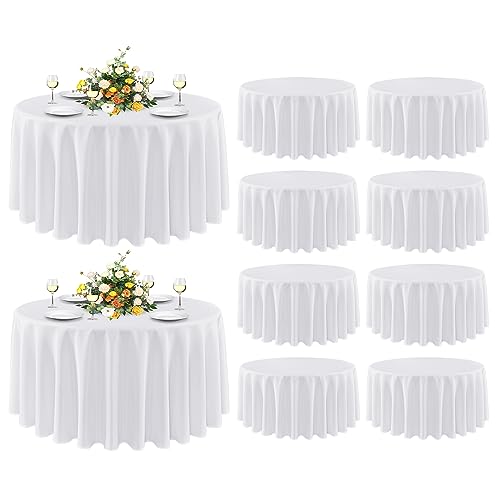 sancua 10 Pack Round Tablecloth White 90 Inch - Stain and Wrinkle Resistant Table Cloth, Washable Polyester Table Cover for Dining Tables, Buffet Parties and Camping