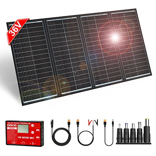 DOKIO 300W 36V Portable Folding Solar Panel Kit for 24V Batteries & Power Stations Lightweight Charger for AGM, LiFePO4, Deep Cycle — RV, Trailer, Truck, Boat, Camping, Van, Emergency