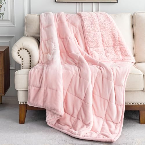 Uttermara Weighted Blanket Twin 15 Pounds, Adult Weighted Blanket for Sofa Bed, Thick Cozy Fluffy Warm Sherpa Bed Blanket with Soft Plush Flannel Fleece, Heavy Blanket Great for Sleep 48x72 inch Pink