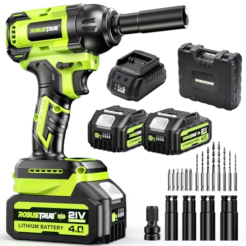 Robustrue Cordless Impact Wrench, 406Ft-lbs (550N.m) Brushless 1/2 inch, 2800RPM High Torque Impact Gun, 2x 4.0Ah Battery, Charger, 4 Sockets, Electric Impact Wrench for Car Home