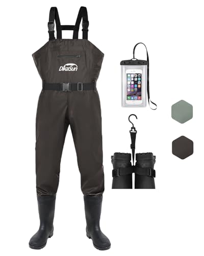 DikaSun Fishing Waders for Men & Women, Waterproof 2-Ply Nylon/PVC Chest Wader with Boots for Outdoor Sizes 4-13 Bootfoot