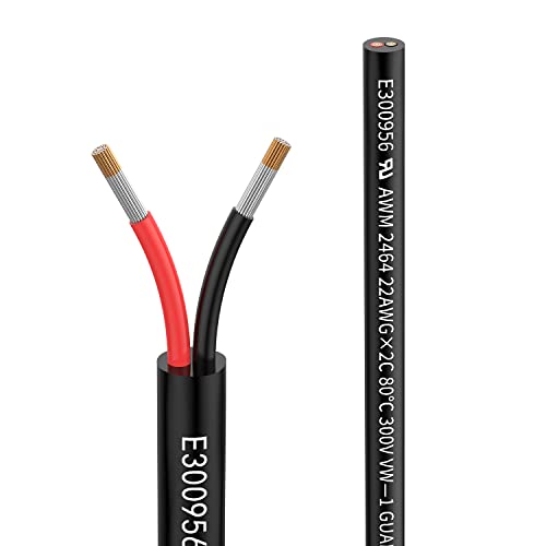 22 Awg 0.3mm² 22/2 Gauge Electrical Wire 2 Conductor Extension Cable 50 Foot UL2464 DC 5V/12V/24V/300V Oxygen Free Stranded Tinned Copper Wire Low Voltage LED Cable for LED Lamps Automotive