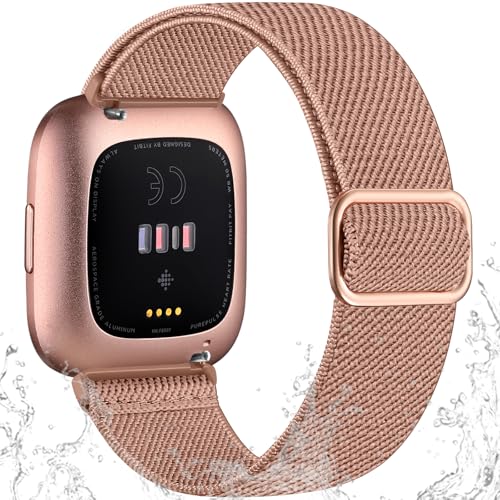 Odbeai Stretchy Band Compatible with Fitbit Versa 2 Bands, Soft Band Compatible with Fitbit Versa Bands for Women Men, Water-Resistant Adjustable Elastic Nylon Sport Wristbands Strap, Deep Pink