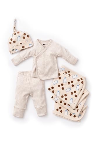 MONICA + ANDY Baby Hospital Cuddle Box, Size 0-3 Mos, Cookies + Milk, 100% Organic Baby Clothes for Girls & Boys, Blanket, Cap, 2 Top & Pants Sets, Sustainable Super Soft Fabric for Newborn & Infants