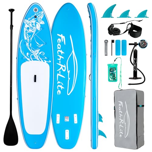 FEATH-R-LITE Inflatable Paddle Board Stand Up Paddleboards for Adults SUP with Complete Premium Accessories Pump, Adjustable Paddle, Leash, Three Fins, Waterproof Phone Bag, Repair Kit, Backpack