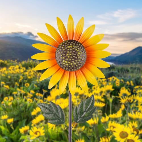 Venniy Yard Wind Spinner Outdoor,Garden Wind Spinners & Wind Sculptures,Sunflower Windmills Lawn Decor,Metal Flower Garden Pinwheels for Yard,12.8 * 57 Inches
