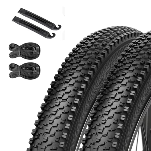 Mountain Bike Tires 24/26x1.95 Inch 2-Pack 30TPI - Puncture-Resistant & Wear-Resistant Foldable Hybrid Tires with 2 Inner Tubes & Levers, Aggressive Tread for Trail, Commuter, Off-Road