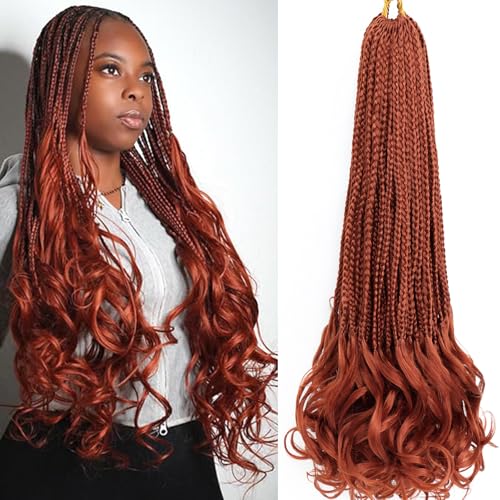 Curly Crochet Hair for Women Goddess Box Braids Crochet Hair Pre Looped French Curl Braiding Hair Crochet Braids 22 Inch 7 Packs French Curls Copper Red Knotless Braid Hair Extensions 350#