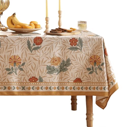 patdrea Designer Floral Linen Table Cloth Durable Breathable Table Cover Decor Kitchen Dining Tablecloth for Rectangular Tables for Kitchen Dining Parties,Holiday Christmas,63"x 110"