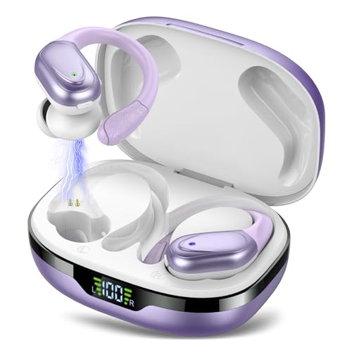 Ear buds Wireless Earbuds Bluetooth 5.3 Headphones 60hrs Playtime with Digital Display Sports Wireless Headphones with Earhook Deep Bass IPX7 Waterproof Over-Ear Earbuds for Android iOS Workout Purple