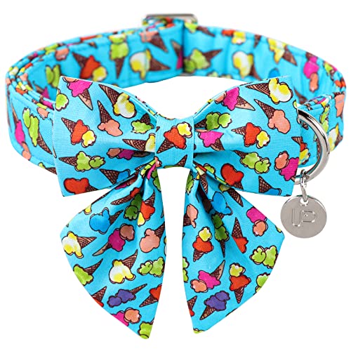 UP URARA PUP Summer Dog Collar with Bow Tie, Cotton Cute Bowtie Dog Collar, Summer Bowtie Collar for Puppy Boy Girl Dog or Cat, Comfortable Blue Dog Collar with Metal Buckle, XS