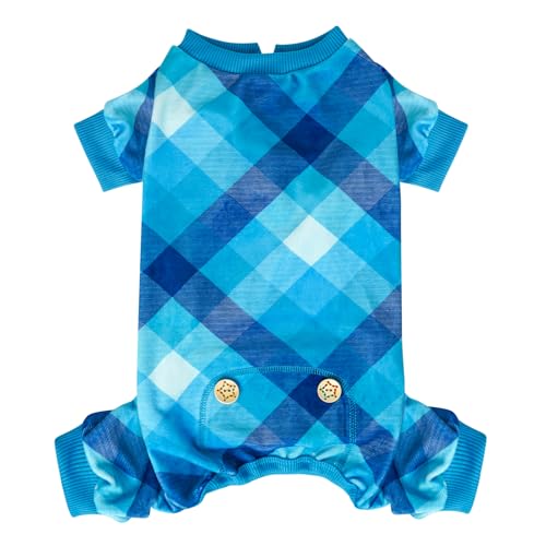 KYEESE Dog Pajamas Comfy Pet Clothes Lightweight Pjs Velvet Doggie Jammies Plaid Dog Pajamas for Small Dogs Boy Girl Soft Coat Stretchy Onesie,Blue, Large