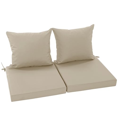 Summsun Outdoor Chair Cushions Set of 2, Waterproof Backrest and Deep Seat Cushion Set for Patio Furniture, Outdoor Sofa Replacement Cushions with Removable Cover, 24 x 24 Inch, Cream