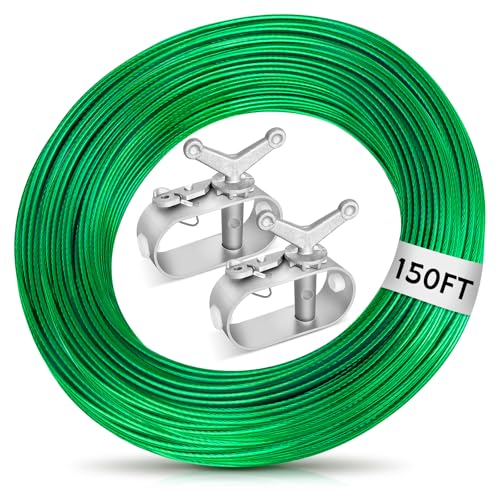 Jowlawn Pool Cover Cable and Winch Kit 150ft Plastic-Coated Steel Pool Cover Wire and Winch for Above Ground Pool Cover Cable Winch Pool Cover Cable Heavy Duty Pool Cable and Winch Kit (Green)